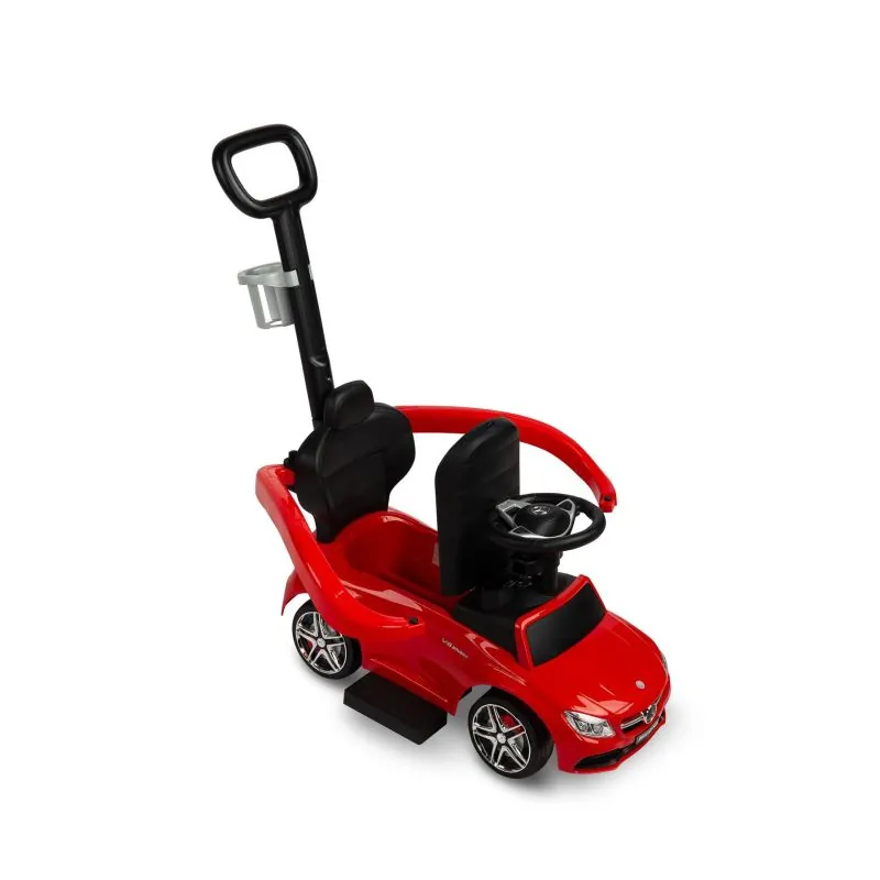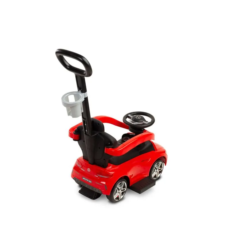 Priekšējie torsionālie riteņi, vadāmi ar rokturi.Trīs spieķu stūre ar Mercedes logotipu.Izvelkamas kāju balsti, kuras var jebkurā laikā salocīt vai izplest.Kaste zem sēdekļa.Ērts un elegants sēdeklis ar atzveltni.Metāla riteņu asis.Noņemami aizsargmargi un atzveltne.Aizsardzība pret transportlīdzekļa apgāšanos.Pudeles/krūzes turētājs.Interaktīvs stūre (3 melodijas un skaņas signāls).Vecums 12-36 mēneši.Riteņa diametrs - 14 cm.CE drošības sertifikāts.Barošana: 2 AA baterijas (nav iekļautas komplektā).