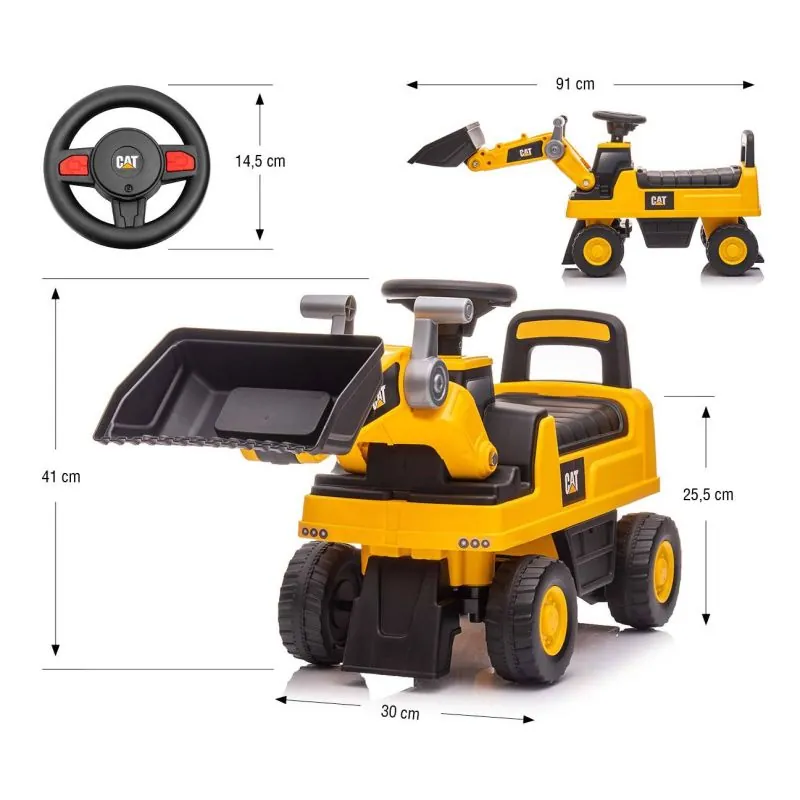 Griežami priekšējie riteņiMetāla riteņu asisUzglabāšanas nodalījums zem sēdekļaĒrts, konturēts sēdeklis ar atzveltniPārvietojama iekrāvēja "roka un lāpsta".Divi apgāšanās aizsardzības ierīcesInteraktīvs stūres rats – skaņas signālsVecuma diapazons: 12-36 mēnešiMaksimālā slodze: 25 kgCE drošības sertifikātsBarošana: 2 AAA baterijas (nav iekļautas komplektā)TEHNISKIE DATI: Augstums: 41 cmPlatums: 30 cmGarums: 91 cmAugstums līdz sēdeklim no zemes: 25,5 cmSēdekļa izmēri: 27 x 19 cmRiteņa diametrs: 13,5 cmStūres diametrs: 14,5 cmAttālums no atzveltnes līdz stūrei: 26 cmUzglabāšanas nodalījuma izmēri – pirmais sektors: 16 x 15 x 12 cmUzglabāšanas nodalījuma izmēri - otrais sektors: 9,5 x 12 x 6 cmLāpstas izmēri: 22 x 17 x 7 cm