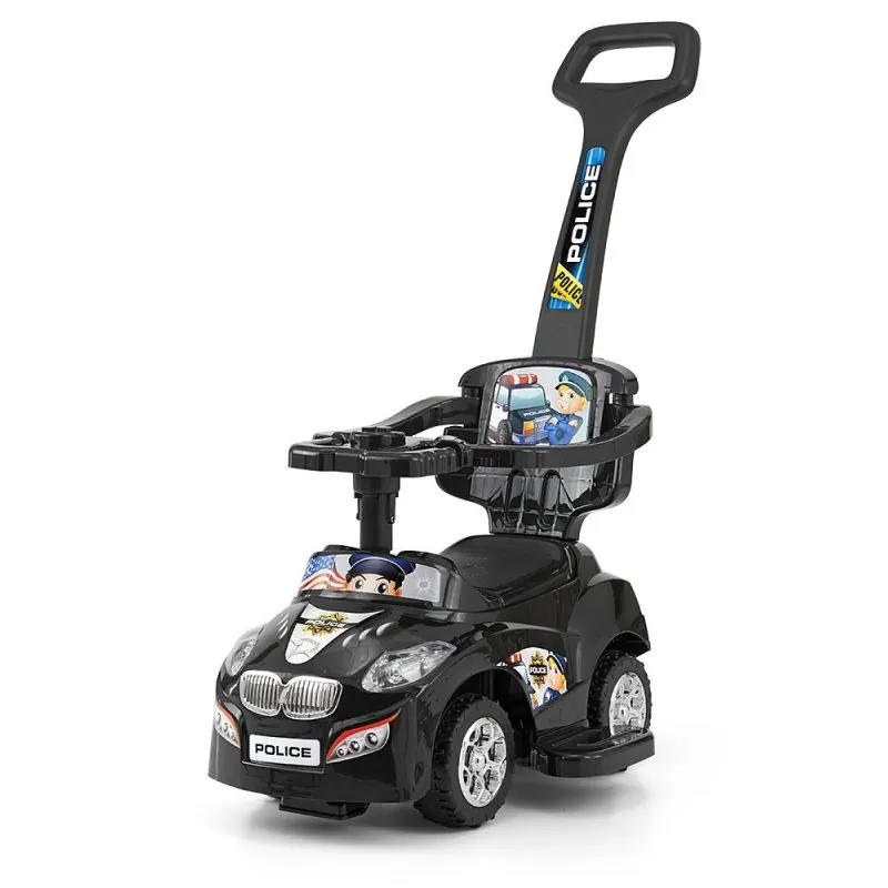 Milly Mally stumjama mašīnīte ar stumšanas rokturi Happy, Melna