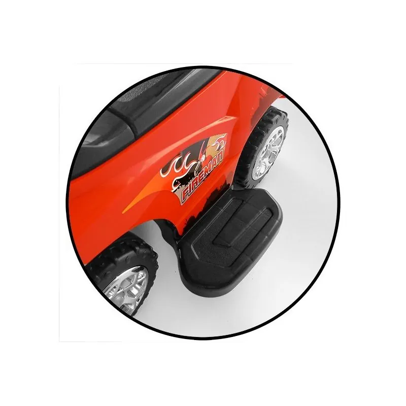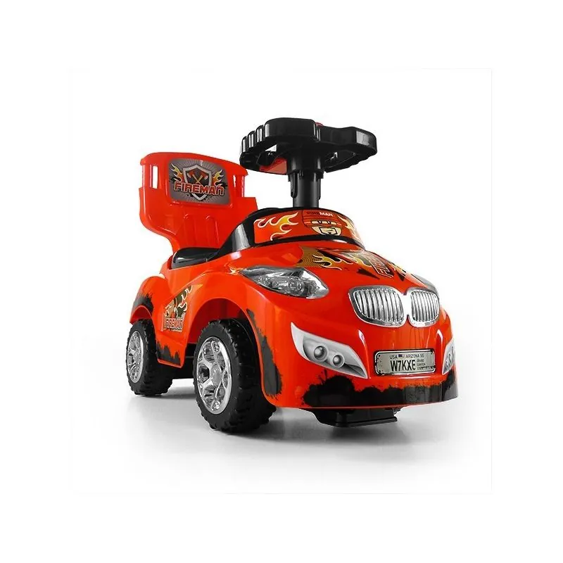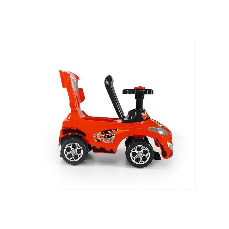 Torsionālie priekšējie riteņi, vadāmi ar stūres sviru;Stūre ar skaņas signālu un jautrām melodijām;Šī mašīnīte ir aprīkota ar aizsardzību pret sānu un atpakaļejošu apgāšanos, kāju paliktņiem un rokturi mašīnītes stumšanai;Šos piederumus varēs noņemt, kad bērns vēlēsies braukt ar mašīnīti pats;Mantukaste zem sēdekļa.Ērts un elegants eco ādas sēdeklis ar atzveltni;Metāla riteņu asis;Noņemami aizsargmargi un atzveltne;Aizsardzība pret transportlīdzekļa apgāšanos;Interaktīvs stūre;Vecums 18-36 mēn.