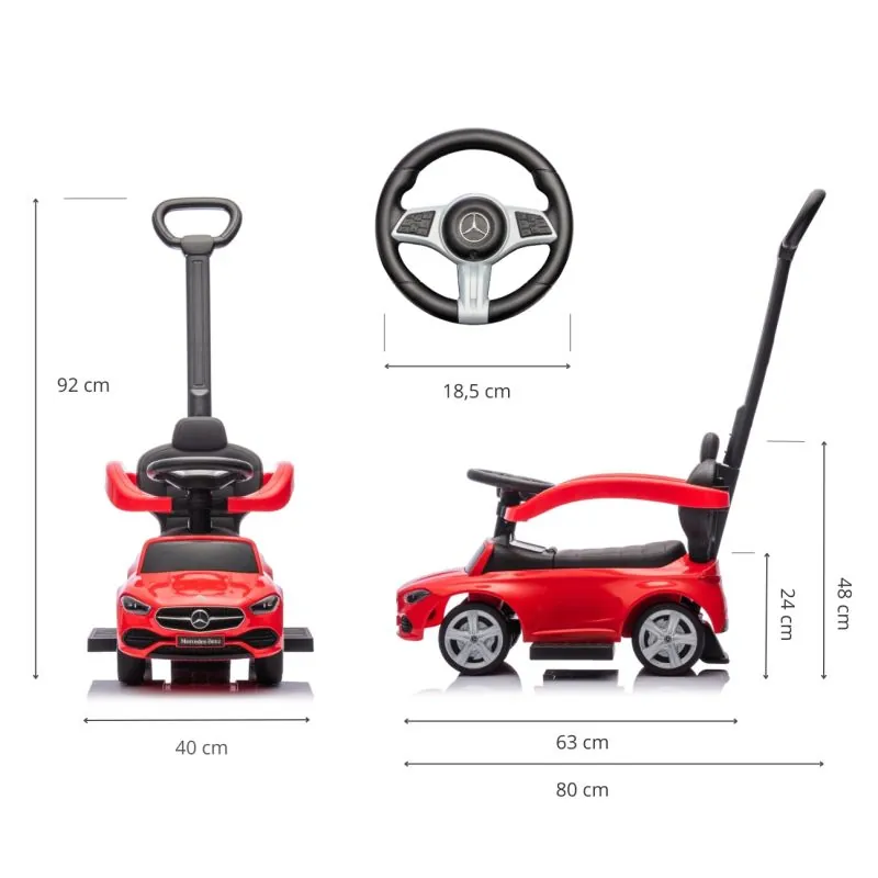 Milly Mally stumjama mašīnīte ar stumšanas rokturi MERCEDES C-klase, Sarkana