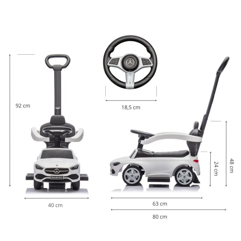 Milly Mally stumjama mašīnīte ar stumšanas rokturi MERCEDES C-Class, Balta