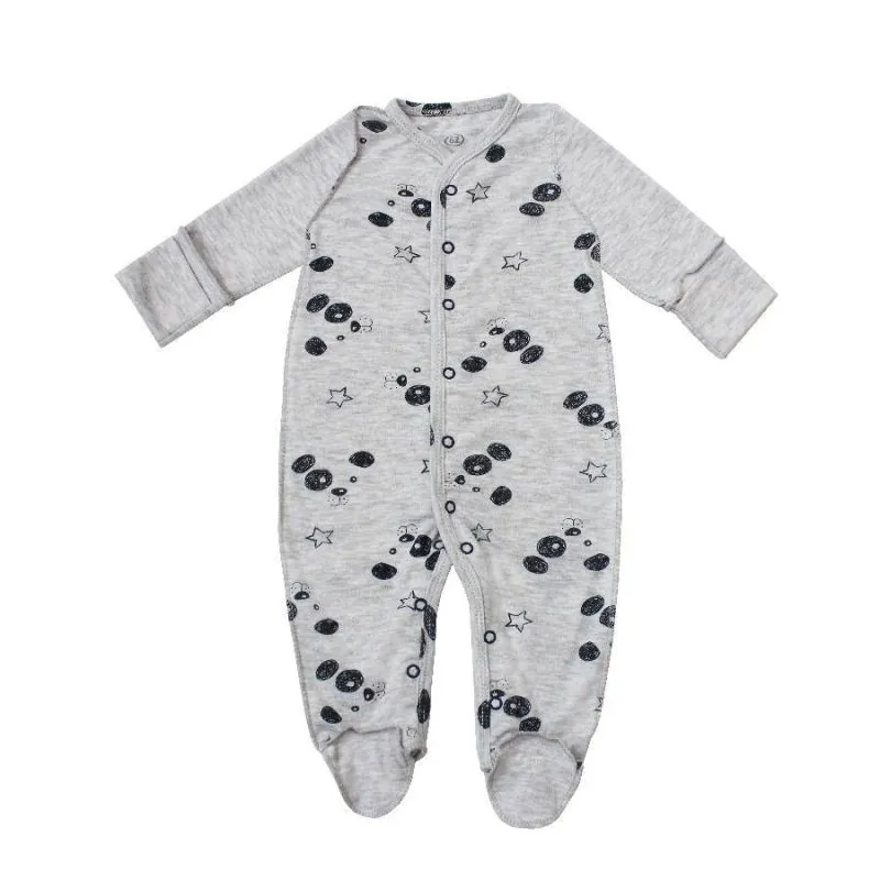 Kokvilnas rāpuļtērps ar apgrieztām šuvēm, kas aizveras ar spiedpogām visā priekšējā garumā.