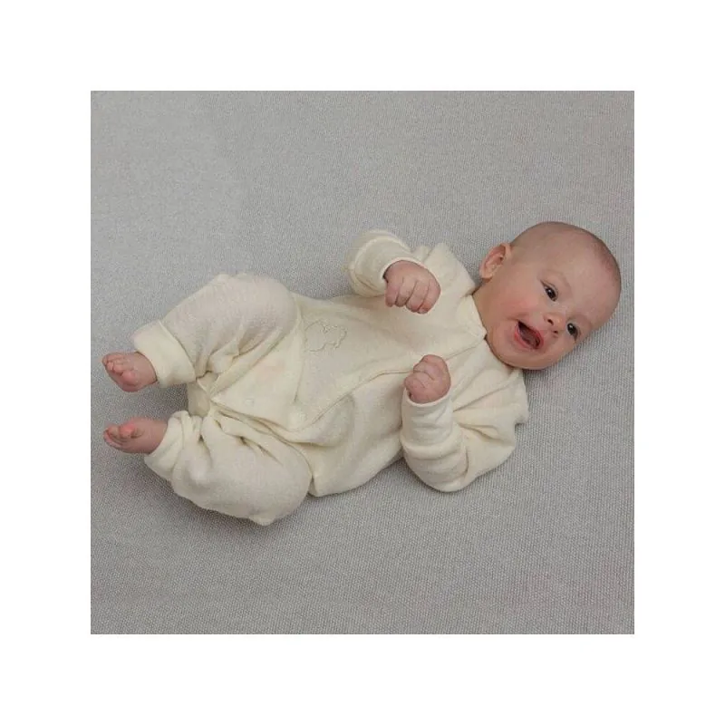 Izgatavots no OEKOTEX sertificētas un mīkstas 100% merino vilnas.Aizveramas cimdiņi, kājiņas.Merino vilna uztur nemainīgu mazuļa ādas temperatūru, neļaujot mazulim ne pārkarst, ne nosalt.Mazgāt ar rokām 30 grādu temperatūrāIzgatavots Lietuvā