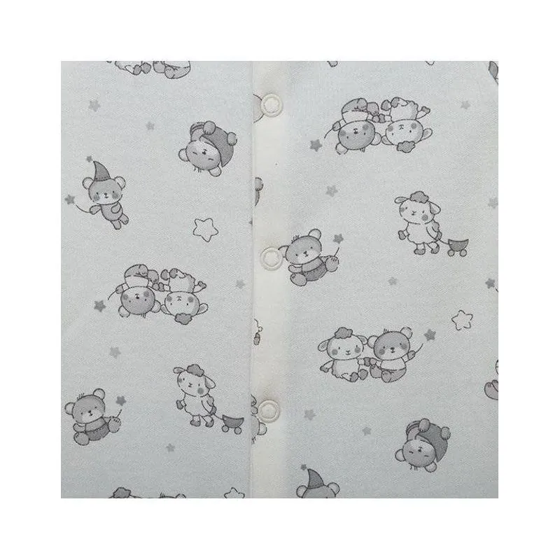 Ar garām piedurknēm.Ar aizvērtām pēdām.Izgatavots no mīksta un maiga trikotāžas, kas sertificēts ar Oeko-tex standartu 100.Aizverams ar spiedpogām priekšpusē līdz pat pēdām.Augstas kvalitātes apģērbs atbilst ES standartiem.Krāsa: balta.Ražots Lietuvā.
