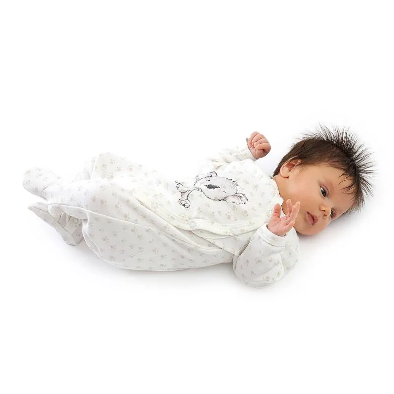 Izgatavots no OEKOTEX sertificētas un mīkstas 100% kokvilnas.Aizveramas cimdiņi, kājiņas.Mazgāt ar rokām 30 grādu temperatūrāRažots Lietuvā