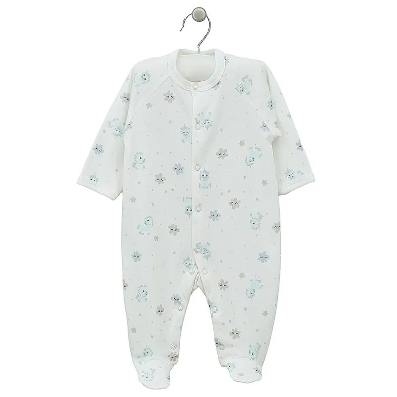 Ar garām piedurknēm;Ar slēgtām pēdiņām;Izgatavots no mīksta un maiga trikotāžas, sertificēta pēc Oeko-tex standarta 100.Aizdarāms ar spiedpogām priekšpusē līdz pat pēdiņām;Augstas kvalitātes apģērbs atbilst ES standartiem.Krāsa: balta;Izgatavots Lietuvā;