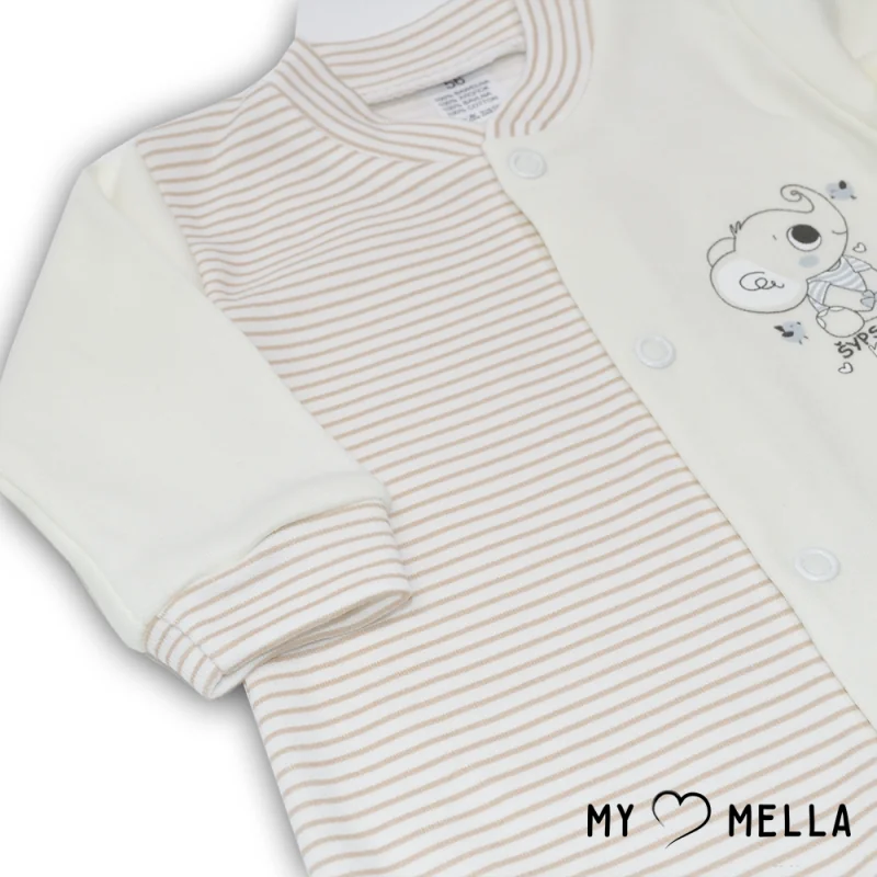 Spēlīgs un stilīgs kombinezons zīdainim "Smaidi".Saskaņots moderns dizains un tradīciju praktiskums.Īpaši mīkstas kokvilnas kombinezons, piemērots kā virsdrēbes vai miega apģērbs: viengabala un drošs.Visi izmēru modeļi atverami ar spiedpogām priekšpusē un abās bikšu starās, tāpēc ir ļoti ērti pārģērbt pat guļošu mazuli.Var iegādāties šīs kolekcijas: bodiju, bikses.Mazgāt 40 grādu temperatūrā.Izstrādāts Lietuvā!