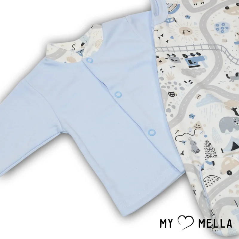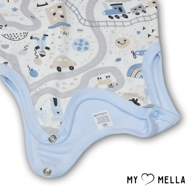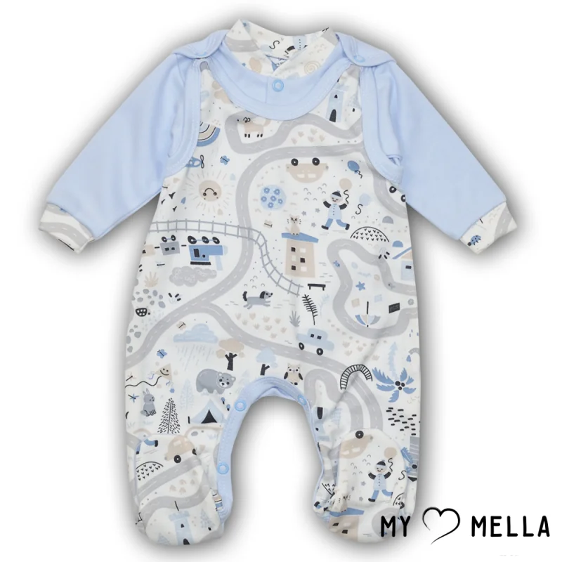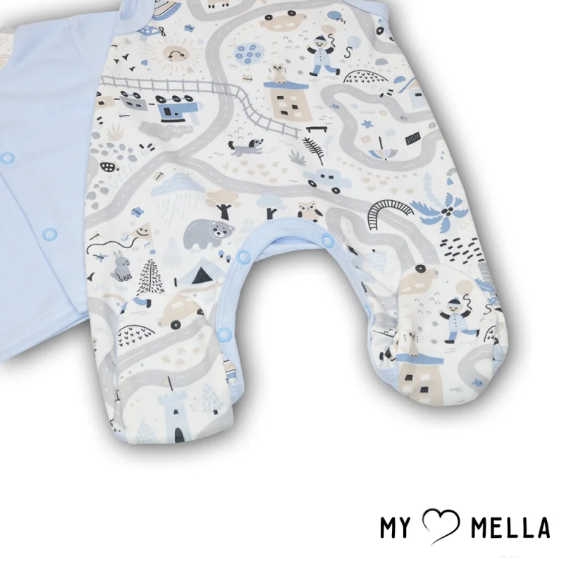 Spēlīgs un stilīgs komplekts zīdainim "Pilsēta".Saskaņots moderns dizains un tradīciju praktiskums.Ļoti mīksta kokvilnas kombinezons, piemērots kā virsdrēbes vai miega apģērbsKombinezona plecu un kājstarpes daļas aizdarāmas ar spiedpogām, tāpēc būs ērti ne tikai apģērbt, bet arī nomainīt autiņbiksītes.Krekliņš ar garām piedurknēm priekšpusē aizdarāms ar spiedpogām.Var iegādāties šīs kolekcijas: kombinezonu, bodiju, biksītes.Mazgāt 40 grādu temperatūrā.Radīts Lietuvā!