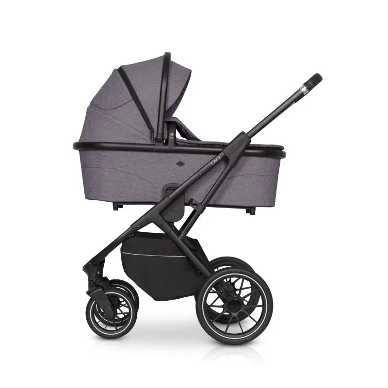 Liels šūpulis (iekšējais garums 79 cm)Šūpulis ar atsevišķu lietus aizsardzību,Ekoloģiskās ādas pārklāta nesšanas rokturis,Saules jumtiņš ar papildu noņemamu daļu,Apakšā plastmasas kājiņas un ventilācijas panelis.