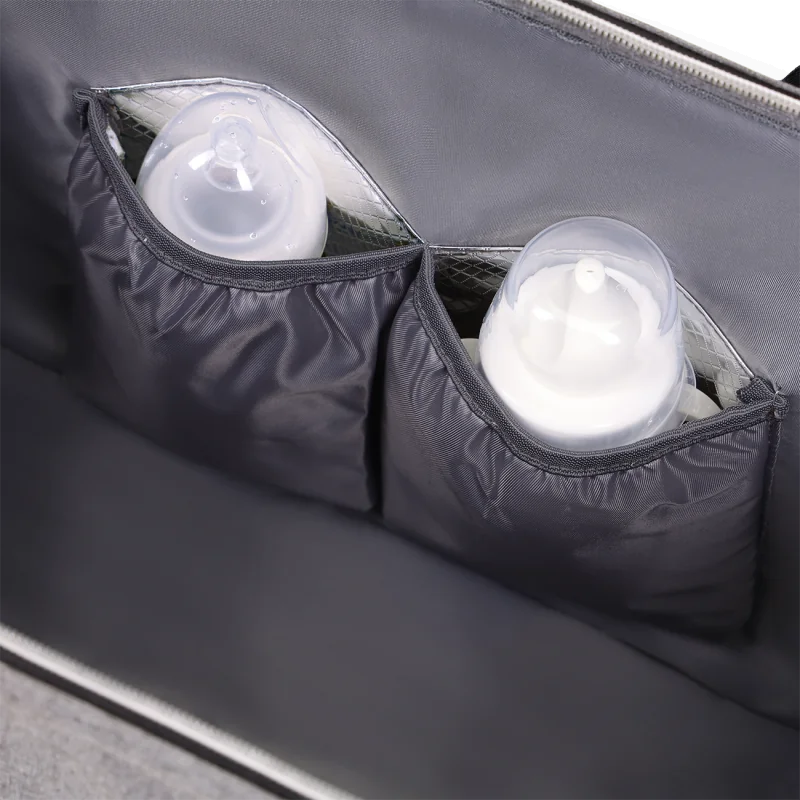 Ļoti ietilpīgs, Mommy Bag tipa, ļauj paņemt visus nepieciešamos priekšmetus pastaigai.