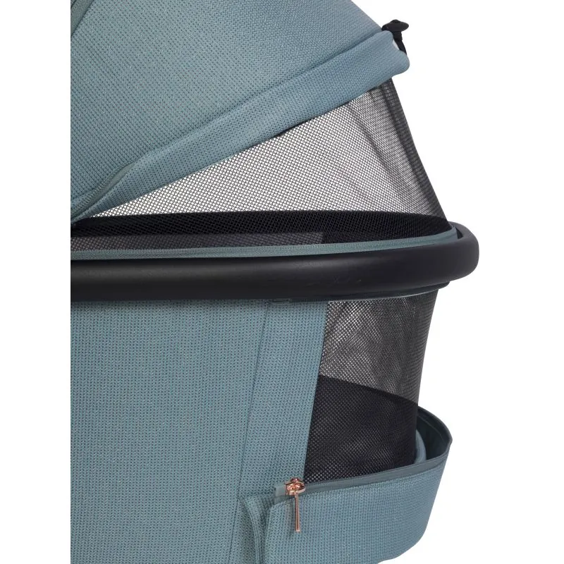 - atbilstības EN 1888-1:2019 sertifikāts,- iekšējais garums 79 cm,- lietus pārsegs,- iespēja uzstādīt moskītu tīklu, kas ir ratiņu komplekta daļa,- Eko ādas pārklāta nesēšanas roktura ar dekoratīvām šuvēm,- saules aizsargs ar papildu rāvējslēdzēju un ventilācijas paneli,- plastmasas kājiņas šūpuļa apakšā, kas ļauj to novietot uz zemes,- lielas slēgtas ventilācijas plāksnes šūpuļa priekšpusē un aizmugurē,- iespēja salocīt šūpuli glabāšanai vai transportēšanai,