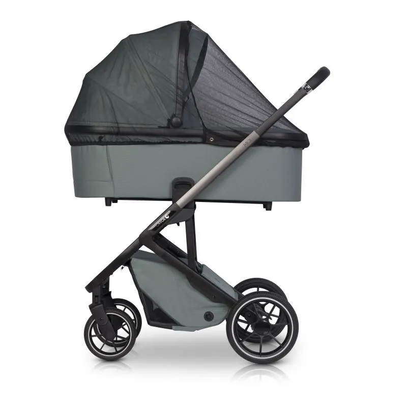 Liels šūpulis (iekšējais garums 78 cm),Šūpulis ir ļoti viegls un ērta forma.Šūpulis noņemams ar vienu roku (atmiņas pogas funkcija).To var salocīt plakanu transportēšanai vai uzglabāšanai. Priekšējā šūpuļa daļā ir liels slēgts ventilācijas nodalījums, Šūpulis ir aprīkots ar plastmasas kājiņām, pateicoties kurām tas nesasmērēsies, novietots uz zemes,Turi atskirą apsaugą nuo lietaus, tinklelį nuo uodų, nešimo rankeną, stogelį nuo saulės.