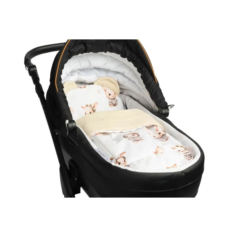 Muslīna un kokvilnas 2 daļu gultas veļas komplekts ratiņiem.
