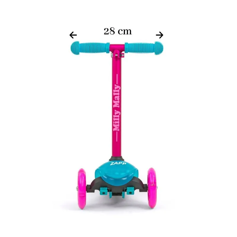 Viegls dizains, kas izgatavots no plastmasas un alumīnija.Trīsriteņu konstrukcija.Ar tērauda konstrukciju pastiprināta platforma.Neslīdošs platformas pārklājums.3 pozīciju stūrēšanas diapazona regulēšana.Stūres augstuma regulēšana - 2 līmeņi - 61 un 66 cm.Skrejriteņa saliekšanas sistēma, kas taupa vietu transportēšanas un uzglabāšanas laikā.Gumijas riteņi – klusi un nodrošina saķeri.Priekšējie riteņi ar LED diodēm.Aizmugurējais ritenis ar bremzi.Gultņi ABEC - 5.Maksimālā slodze - 50 kg.Vecums 3+.