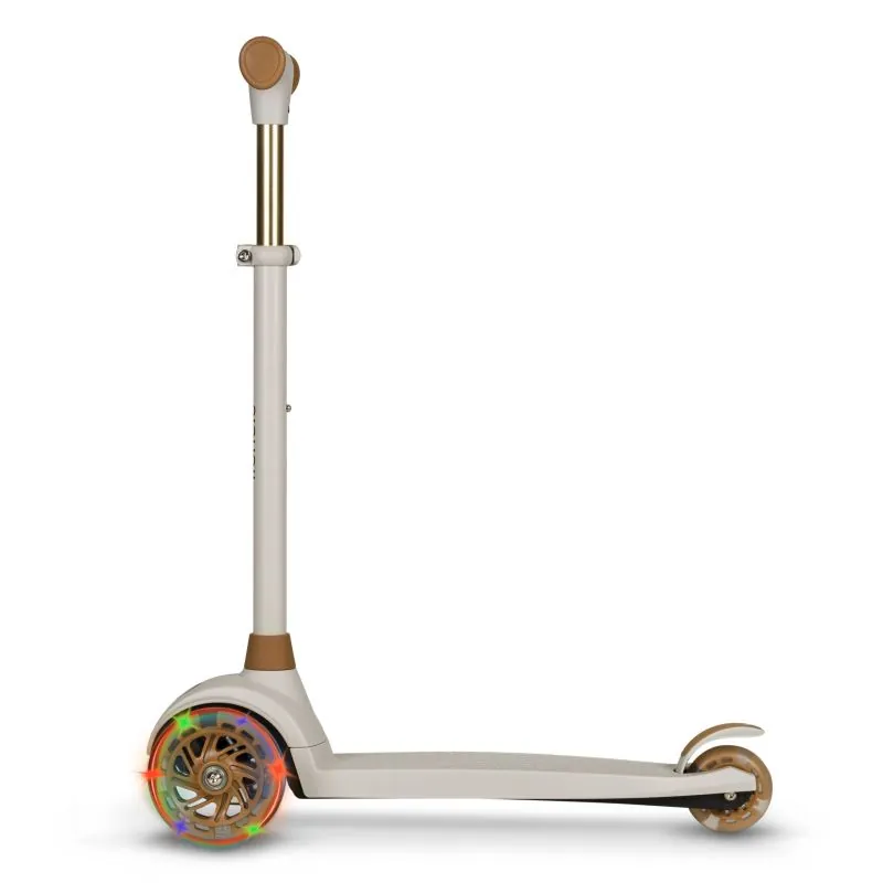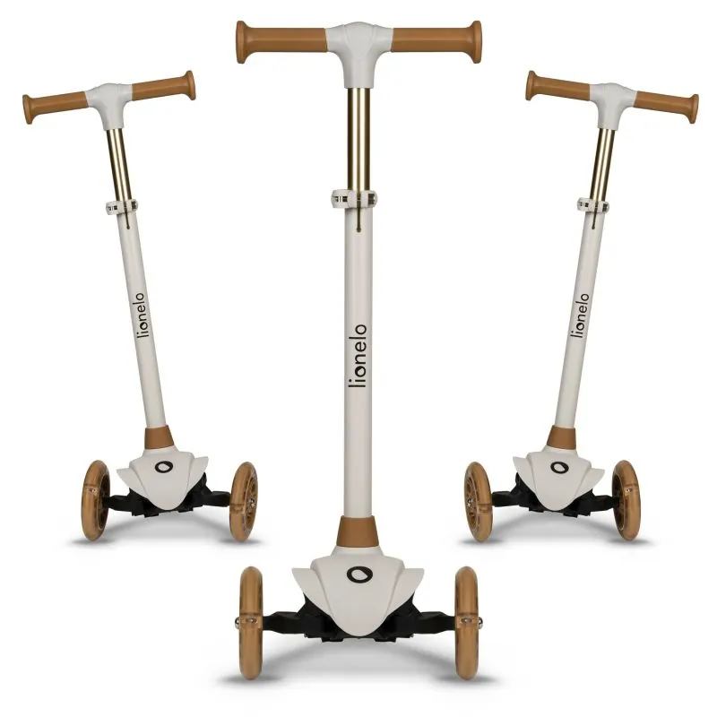 Viegls un izturīgs dizains (alumīnijs, stikla šķiedra, PVC);Ērti rokturi;Regulējams 4 līmeņu roktura augstums;Trīs riteņi nodrošina stabilitāti;Priekšējie riteņi braucot spīd;Bērniem no 3+ gadu vecuma;Kustoties priekšējie riteņi spīd;Maksimālā slodze līdz 50 kg;Aprīkots ar bremzi - aizmugurējo spārnu;Riteņi, kas izgatavoti no augstas kvalitātes gumijas, nodrošina labāko veiktspēju.Regulējams roktura augstums 65-80 cm;Priekšējo riteņu diametrs - 12 cm, aizmugurējā - 10 cm;