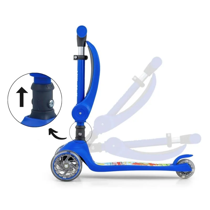Regulējams 4 līmeņu stūres augstums ļauj izmantot skrejriteni ilgāk;