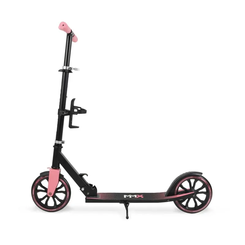 Alumīnija konstrukcija (izņemot priekšējo dakšu un bremzes);Inovatīvs saliekšanas mehānisms;Viegls saliekums: garums 76,5 cm x augstums 32 cm x platums 12,5 cm.;Plaša platforma (32 x 11,5 cm);Īpaši turētāji saliekamām rokturiem uz stūres kolonnas;Gumijas neslīdoši konturēti stūres rokturi;Neslīdoša platformas virsma;Papildu neslīdoša uzlīme platformai;Krūzes turētājs ar regulējamu stiprinājumu;Ērta, regulējama siksna skrejriteņa nēsāšanai ar MMX logotipu;Priekšējā dakša un bremzes izgatavotas no tērauda;Augstas kvalitātes lieli 20,5 cm diametra riteņi, izgatavoti no lieta poliuretāna, ar lielu atsitienu un lielisku PU efektu;ABEC-7 gultņi;Aizmugurējo riteņu berzes bremze (tērauda);Stāvēšanas kājiņa;Regulējams stūres augstums no 89 līdz 98 cm.;Maksimālais lietotāja svars: 20–100 kg.;Skrejriteņa svars: 4,3 kg.