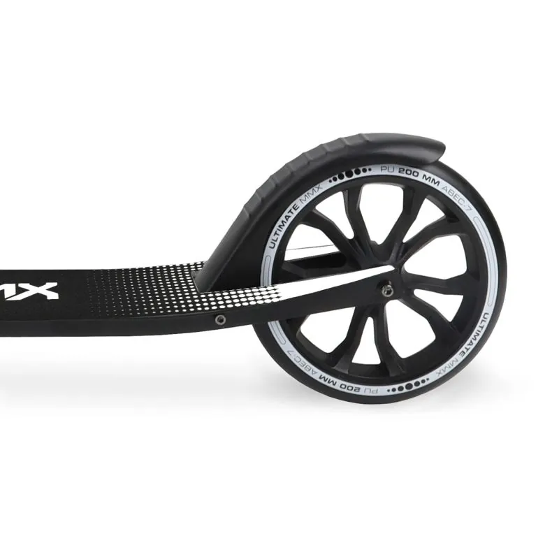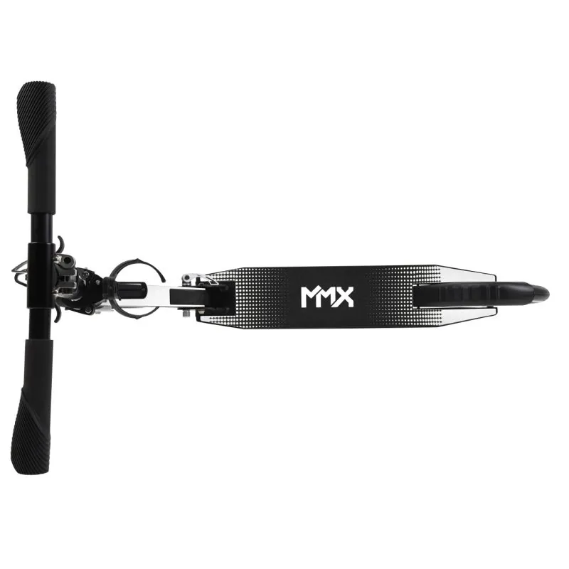 Alumīnija konstrukcija (izņemot priekšējo dakšu un bremzes);Inovatīvs saliekšanas mehānisms;Viegls saliekums: garums 76,5 cm x augstums 32 cm x platums 12,5 cm.;Plaša platforma (32 x 11,5 cm);Speciāli turētāji saliekamām rokturiem uz stūres kolonnas;Gumijas neslīdoši konturēti stūres rokturi;Neslīdoša platformas virsma;Papildu neslīdoša uzlīme platformai;Krūzes turētājs ar regulējamu stiprinājumu;Ērta, regulējama siksna skrejritenim nēsāšanai ar MMX logotipu;Priekšējā dakša un bremzes izgatavotas no tērauda;Augstas kvalitātes lieli 20,5 cm diametra riteņi, izgatavoti no lieta poliuretāna, ar lielu atsitienu un lielisku PU efektu;ABEC-7 gultņi;Aizmugurējo riteņu berzes bremze (tērauda);Parkošanas kājiņa;Regulējams stūres augstums no 89 līdz 98 cm.;Maksimālais lietotāja svars: 20–100 kg.;Skrejriteņa svars: 4,3 kg.