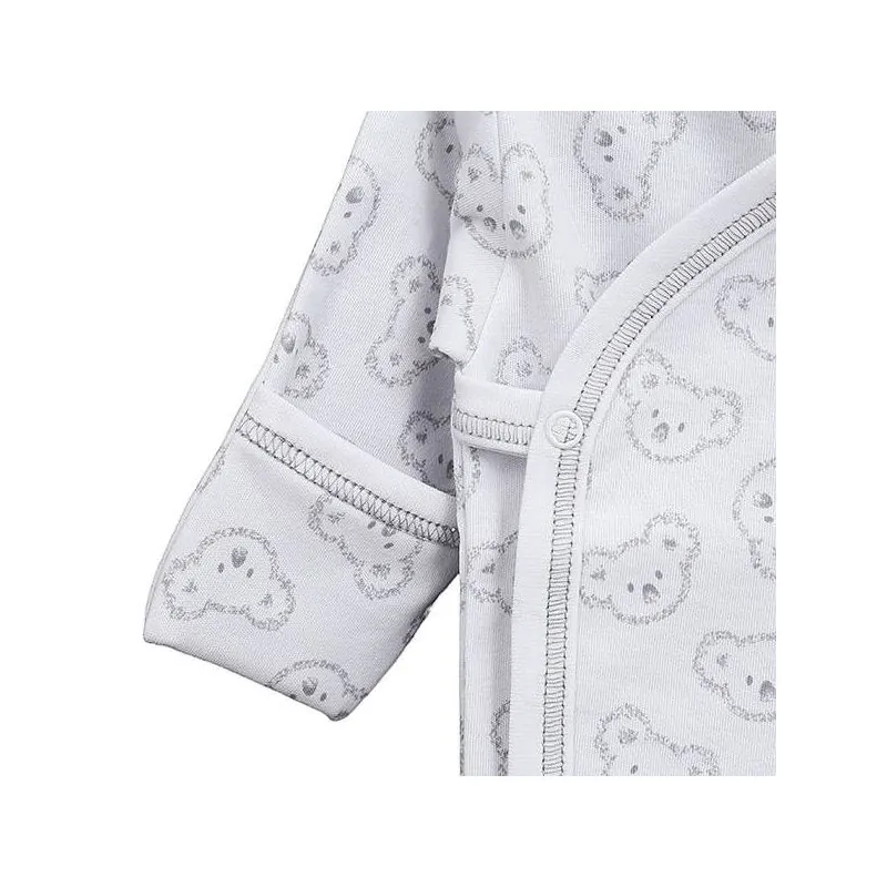 Ar garām piedurknēm;Atlokāmi cimdiņi;Aptinams;Aizverams ar spiedpogām sānos un starpenē;Izgatavots no mīksta un maiga trikotāžas, sertificēts pēc Oeko-tex standarta 100.Augstas kvalitātes apģērbs atbilst ES standartiem.Krāsa: balta;Ražots Lietuvā;