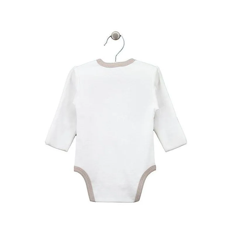 Ar garām piedurknēm;Atlokāmi cimdiņi;Aizdarāms ar spiedpogām sānos un starpenē;Izgatavots no OEKOTEX sertificētas un mīkstas 100% kokvilnasKrāsa: balta;Ražots Lietuvā;