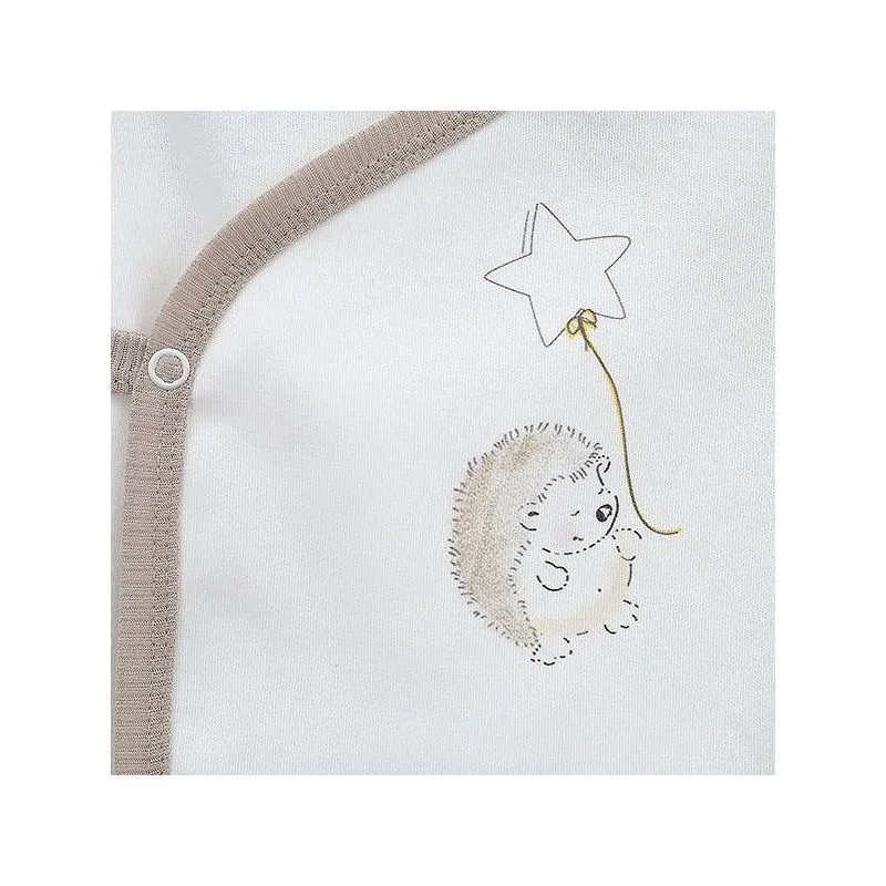 Ar garām piedurknēm;Atlokāmi cimdiņi;Aizdarāms ar spiedpogām sānos un starpenē;Izgatavots no OEKOTEX sertificētas un mīkstas 100% kokvilnasKrāsa: balta;Ražots Lietuvā;