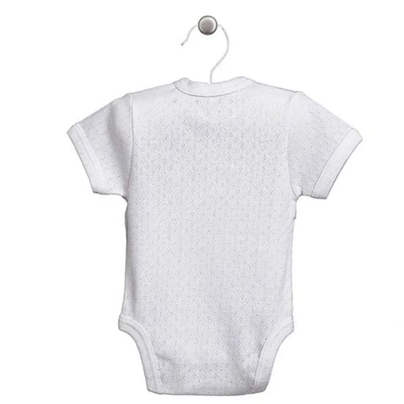 Īsām piedurknēm;Aizdarāms ar spiedpogām sānos un starpenē;Izgatavots no OEKOTEX sertificētas un mīkstas 100% kokvilnasKrāsa: balta;Ražots Lietuvā;