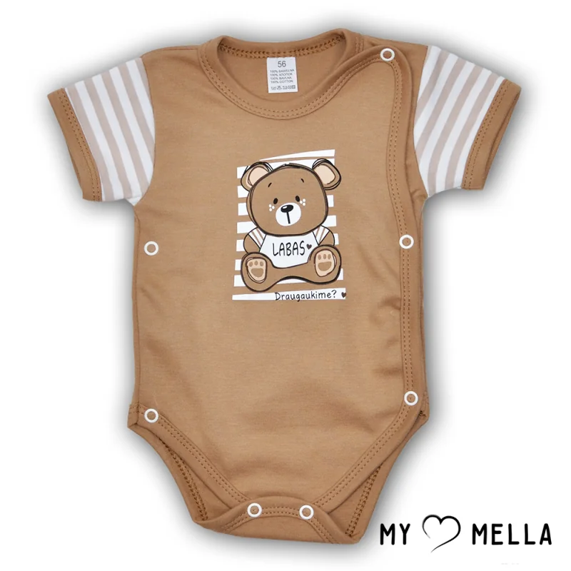 Smilšu krekls ar uzrakstu "LABAS", kakao krāsā, ar īsām piedurknēm 56-62cm.