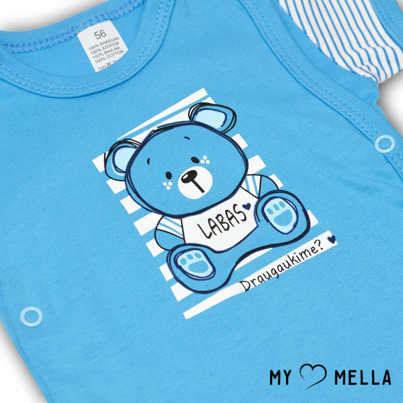 Spēlīgs un stilīgs zīdaiņu bodijs "Labas".Saskaņots moderns dizains un tradīciju praktiskums.Īpaši mīksts kokvilnas bodijs, piemērots kā virsdrēbes vai miega apģērbs.Jūsu un mazuļa ērtībai ir sānu (kimono stila) aizdare – lielisks risinājums jaundzimušajiem.Pieejams šīs kolekcijas: kombinezons, bikses.Mazgāt 40 grādu temperatūrā.Izstrādāts Lietuvā!