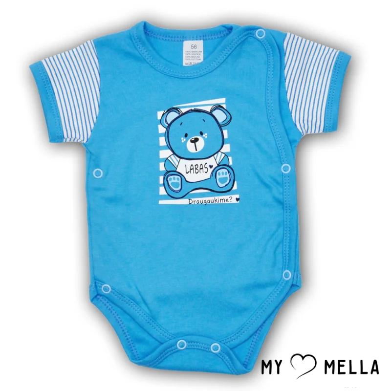 Spēlīgs un stilīgs zīdaiņu bodijs "Labas".Saskaņots moderns dizains un tradīciju praktiskums.Īpaši mīksts kokvilnas bodijs, piemērots kā virsdrēbes vai miega apģērbs.Jūsu un mazuļa ērtībai ir sānu (kimono stila) aizdare – lielisks risinājums jaundzimušajiem.Pieejams šīs kolekcijas: kombinezons, bikses.Mazgāt 40 grādu temperatūrā.Izstrādāts Lietuvā!
