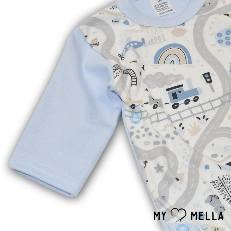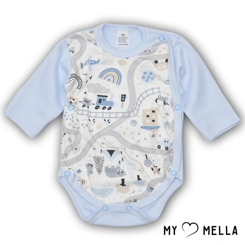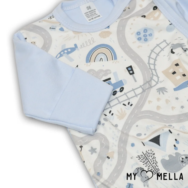 Spēlīgs un stilīgs zīdaiņa bodijs "Pilsēta".Saskaņots moderns dizains un tradīciju praktiskums.Ļoti mīksts kokvilnas bodijs, piemērots kā virsdrēbes vai miega apģērbs.Jūsu un zīdaiņa ērtībai ir sānu (kimono stila) aizdare – tas ir lielisks risinājums jaundzimušajiem.Ar garām piedurknēm.Aizdarāms ar spiedpogām.Ar nolokāmām cimdiņām.Izgatavots no kvalitatīva, mīksta un maiga trikotāžas.Var iegādāties šīs kolekcijas: kombinezonu, biksītes, rāpuļus ar krekliņu.Mazgāt 40 grādu temperatūrā.Radīts Lietuvā!