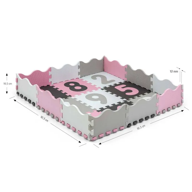 Milly Mally puzle/salikšanas paklājiņš Jolly 3x3 Cipari - Rozā Pelēks