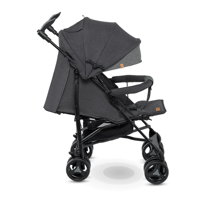 360 grādu rotējoši rokturiAtzveltnes regulēšana guļus stāvoklīĻoti viegla konstrukcija - tikai 7 kgTīkls pret odiem, kāju pārsegs5 punktu jostasLiels iepirkumu grozsAizmugurējā riteņa bremzeĀtri un viegli saliekama sistēmaĒrts pārnēsāšanas rokturisMūsdienīgs dizains
