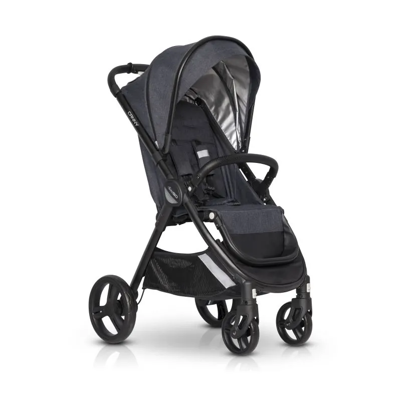 Viegls alumīnija rāmis;Inovatīva saliekamā sistēma (salokāma tikai ar vienu roku;Priekšējie riteņi grozāmi, tos var fiksēt braukšanai taisni;Uzticama aizmugurējā bremze;4 pozīciju atzveltne ar guļus pozīciju;2 pozīciju regulējams kāju balsts;Regulējams jumtiņš, pagarināms no saules vai vēja;Jumtiņa materiāls izgatavots no auduma ar UV50+ filtru;Logi vecākiem ar ventilāciju;Viegli noņemams buferis pārklāts ar eko ādu;Regulējams roktura augstums;Ērts stumšanas rokturis pārklāts ar eko ādu;Ērta kabatiņa iestrādāta jumtiņā;Liels iepirkumu grozs;Silts kāju pārsegs;Aizsardzība pret lietu;5 punktu drošības jostas; Izgatavots saskaņā ar Eiropas drošības standartu PN-EN 1888:2012;