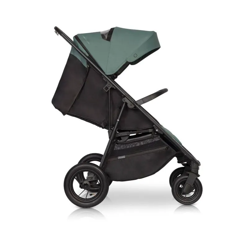 Paredzēts bērniem līdz 22 kilogramiem;4 piepūšami riteņi;Izturīgs alumīnija, melnas krāsas rāmis;360 grādu grozāmi priekšējie riteņi, tāpēc ļoti ērti manevrēt;Braucot pa nelīdzenu ceļu, priekšējos riteņus var fiksēt braukšanai taisni;Kompakti salokāms rāmis aizņem ļoti maz vietas;Rāmis salokās kopā ar sporta daļu, kad sporta daļa ir vērsta uz ceļu;Sporta daļas aizmugurē ir kabatiņa sīkumiem;4 pozīcijās regulējama muguras pozīcijaIr guļus pozīcija;Silts kāju pārsegs;Regulējams kāju balsta augstums;Viegls noņemams un uzliekams eko ādas buferis;Ar rāvējslēdzēja palīdzību, jumtiņš pagarinās, tādējādi aizsargājot no saules un vēja, vidū integrēts tīkliņš;Atverams lodziņš, lai vecāki varētu redzēt bērnu;Polsterētas 5 punktu drošības jostas;Komplektā ir aizsargs pret lietu;Atbilst Eiropas Savienības standartam EN 1888;