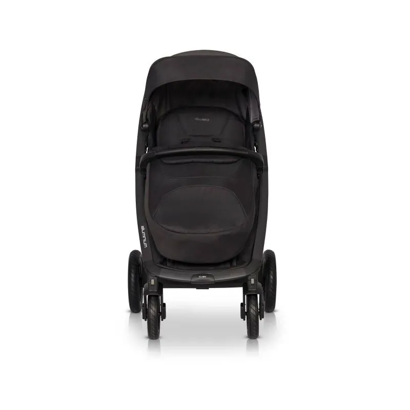 Paredzēts bērniem līdz 22 kilogramiem;4 piepūšami riteņi;Izturīgs alumīnija, melnas krāsas rāmis;360 grādu grozāmi priekšējie riteņi, tāpēc ļoti ērti manevrēt;Braucot pa nelīdzenu ceļu, priekšējos riteņus var fiksēt braukšanai taisni;Kompakti salokāms rāmis aizņem ļoti maz vietas;Rāmis salokās kopā ar sporta daļu, kad sporta daļa ir vērsta uz ceļu;Sporta daļas aizmugurē ir kabatiņa sīkumiem;4 pozīcijās regulējama muguras atzveltnes pozīcijaIr guļus pozīcija;Silts kāju pārsegs;Regulējams kāju balsta augstums;Viegli noņemams un uzliekams eko ādas buferis;Ar rāvējslēdzēja palīdzību, jumtiņš pagarinās, tādējādi aizsargājot no saules un vēja, vidū integrēts tīkliņš;Atverams lodziņš, lai vecāki varētu redzēt bērnu;Polsterētas 5 punktu drošības jostas;Komplektā ir aizsargs pret lietu;Atbilst Eiropas Savienības standartam EN 1888;