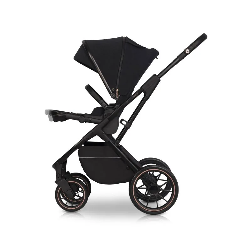 Mūsdienīgs daudzfunkcionāls ratiņš, paredzēts bērniem līdz 22 kg,EN 1888-1-2: 2019-02 standarta atbilstības sertifikātsNoņemams sēdeklis (var uzstādīt uz priekšu un atpakaļ)Iespēja salocīt ratiņus, kad sēdeklis ir uzstādīts uz priekšu un atpakaļ,Teleskopiska kāju balsta garuma regulēšana,Sēdeklis ar 5 punktu drošības jostām, piemērots bērniem no dzimšanas līdz 22 kg (0+ sēdeklis)Buomelis un rokturis pārklāti ar ekoloģisku ādu,Pilns lietus pārsegs, kas sedz visu ratiņu apdariInovatīvs guļammaiss "trīs vienā" (3 funkcijas: guļammaiss, kāju sildītājs, matracis)Pagarināms jumtiņš, kas aizsargā no saules vai vēja,Roktura augstuma regulēšana (ceļvedis),Rokturis salocītu ratiņu nēsāšanai,Lieli riteņi ar gultņiem un gumijas riepām (lieliska saķere arī uz sniega)Iespēja fiksēt priekšējos riteņus taisnai braukšanai,Salocīšanas sistēma ar vienu roku,Iepirkumu grozs zem ratiņiem (viegla piekļuve grozam, pateicoties atloka aizmugurē),Atstarojošs elements uz groza (labāka redzamība un drošība)