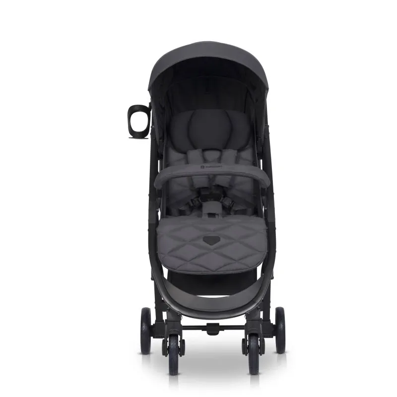 Mūsdienīgs ratiņi bērniem no dzimšanas līdz 22 kg (0+),Ļoti viegli un mazi salocīti, bet tajā pašā laikā augsti izklāti (jauna salocīšanas sistēma ar vienu roku),Ļoti viegls alumīnija rāmis,Riepas izgatavotas no poliuretāna un ar vītni. Poliuretāns ir izturīgāks pret nodilumu salīdzinājumā ar EVA.Regulējams plecu siksnu augstums,Saules aizsargs ar papildu sekciju, ventilācijas paneli,Aizsargājošs buferis ar iespēju noliekt uz sāniem,3 pakāpju atzveltnes regulēšana no guļus līdz pilnīgi sēdošai pozīcijai,2 pakāpju kāju balsta regulēšana,Pilna aizsardzība pret lietu ar ventilācijas atverēm (pārklāj visu ratiņu apdari),Ventilācija kabīnes aizmugurē,Praktiska plecu siksna salocītu ratiņu nēsāšanai,Priekšējo riteņu pagriešanas sistēma ar iespēju bloķēt braucot taisni,Automātiska salocītu ratiņu bloķēšana (atvieglo nēsāšanu),Logs kabīnē,Plašs grozs,Praktiska kabata kabīnes aizmugurē,Apvienots bremzes,Praktiska transportēšanas soma, kas ļauj iepakot ratiņus ar piestiprinātiem riteņiem,sēdekļa daļu un buferi.