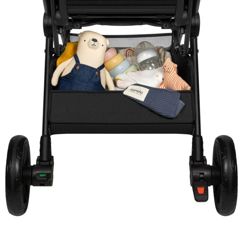 Piemērots bērniem līdz 22 kgApkopes neprasoši riteņi izgatavoti no izturīgas un elastīgas EVA putas.Pagriežamie riteņiPriekšējie riteņi griežas par 360°, tāpēc ratiņus ir vieglāk manevrēt.Priekšējā un aizmugurējā amortizācija nodrošina jūsu mazulim komfortu braucot.Integrētā click&ride sistēma ļauj vecākiem veikt garus soļus, bet kājas bremze nodrošina drošu novietošanu.Ratiņus var viegli salocīt ar vienu roku.Varat izmantot automātiskās salocīšanas sistēmu – nospiežot pogu, ratiņi salocīsies paši. Tos viegli var ievietot pat mazā automašīnas bagāžniekā.Izturīgs alumīnija rāmis sver tikai 8,2 kg.Ratiņus ir viegli nēsāt uz pleca.Komplektā ietilpst speciāls pārvalks un siksna.Sēdekļa atzveltne ir regulējama, tāpat varat nolaist atzveltni guļus stāvoklī.5 punktu jostas nodrošinās bērnam stabilitāti, bet buferis papildus aizsargās bērnu.Kāju balsts, pārklāts ar ekoloģisku ādu.Ratiņi aprīkoti ar ūdensnecaurlaidīgu XXL jumtiņu ar UPF50+ filtru, kas aizsargās mazuli mainīgos laikapstākļos.Lielajā, ietilpīgajā grozā zem sēdekļa varat ievietot pirkumus vai visus pastaigai nepieciešamos piederumus.Praktiskajā krūzīšu turētājā ietilps jūsu iecienītais dzēriens.Jūsu drošībai ratiņi aprīkoti ar atstarojošiem elementiem.Ja ir netīrumi, varat mazgāt apšuvumu un grozu, bet rāmi varat notīrīt ar mitru drānu.