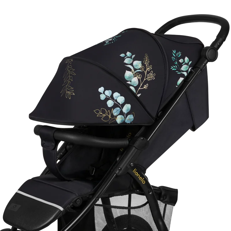 Piemērots bērniem līdz 22 kgSēdeklis salokās plakaniLiela virsma bērnam, nolaižot atzveltni: 90 cmTehniskās apkopes neprasoši PU riteņiĻoti ērta amortizācija9 soļu stumšanas roktura regulēšanaŪdensnecaurlaidīgs XXL jumtiņš ar UPF 50+ filtruMīksts redukcijas iekšzolePlašs iepirkumu grozs ar vieglu piekļuviKāju balsts apdarināts ar eko āduGaismu atstarojoši elementi uz kāju balsta, buomelis un jumtiņš
