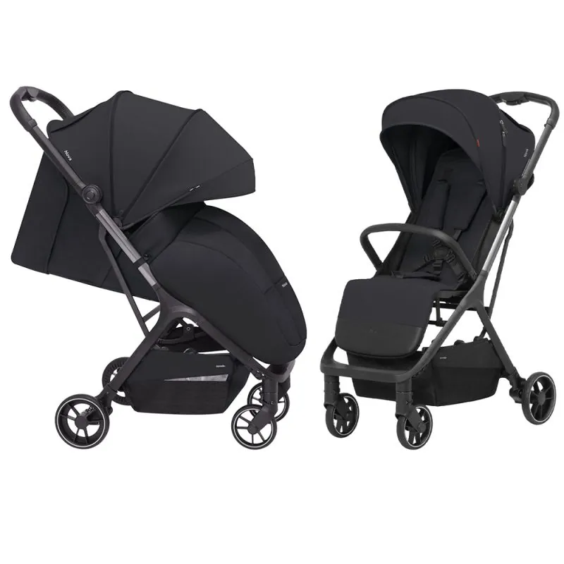 Piemērots bērniem līdz 22 kgBez apkopes riteņi izgatavoti no izturīga un mīksta gela.Priekšējie riteņi griežas par 360°, tāpēc ratiņus ir vieglāk manevrēt.Priekšējā un aizmugurējā amortizācija nodrošina jūsu mazulim komfortu braucot.Ratiņus var viegli salocīt ar vienu roku.Varat izmantot automātisko salocīšanas sistēmu – nospiežot pogu, ratiņi salocīsies paši. Tos viegli ievietosiet pat mazā automašīnas bagāžniekā.Salocīti ratiņi stabili stāv, un tekstilmateriāli neskar zemi, tāpēc tie nesasmērēsies. Izturīgs alumīnija rāmis sver tikai 7,5 kg.Ratiņus ir viegli un ērti nest.Sēdekļa atzveltne ir regulējama, tāpat varat nolaist atzveltni guļus stāvoklī.5 punktu jostas nodrošinās bērnam stabilitāti, bet buferis papildus aizsargās bērnu.Kāju balsts, pārklāts ar ekoloģisku ādu.Ratiņi aprīkoti ar ūdensizturīgu XXL jumtiņu ar UPF50+ filtru, kas aizsargās mazuli mainīgos laika apstākļos.Lielā, ietilpīgā grozā zem sēdekļa varat ievietot pirkumus vai visus pastaigai nepieciešamos piederumus.Logi jumtiņa augšpusē ļaus ērti vērot bērnu.Ventilācija ratiņu aizmugurē.Kabatiņa sīkumiem.Silts kāju pārsegs ar rāvējslēdzēju, tāpēc, lai izceltu vai noliktu bērnu, katru reizi nebūs jānoņem pārsegs. Ja ir netīrumi, varat mazgāt apvalkus un grozu, bet rāmi varat notīrīt ar mitru drānu.