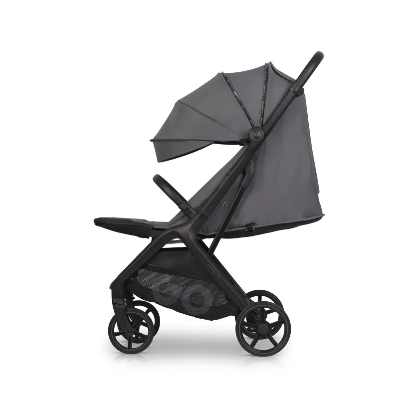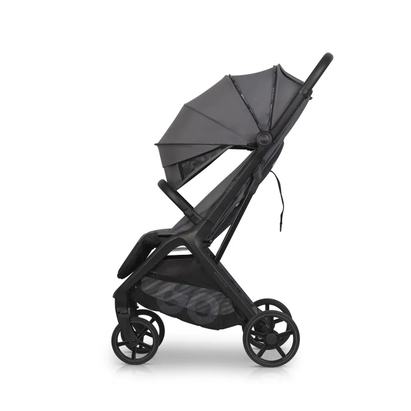 Piemērots bērniem līdz 22 kgBezapkopes riteņi izgatavoti no izturīga un mīksta gela.Priekšējie riteņi griežas par 360°, tāpēc ratiņus ir vieglāk manevrēt.Priekšējā un aizmugurējā amortizācija nodrošina jūsu mazulim komfortu braucot.Ratiņus var viegli salocīt ar vienu roku.Varat izmantot automātisko salocīšanas sistēmu – nospiežot pogu, ratiņi salocīsies paši. Tos viegli var ievietot pat mazā automašīnas bagāžniekā.Ir transportēšanas soma, kas aizsargā no netīrumiem un bojājumiem.Salocīti ratiņi stabili stāv, un tekstilmateriāli nesaskaras ar zemi, tāpēc tie nesasmērēsies. Izturīgs alumīnija rāmis sver tikai 7,9 kg.Ratiņus ir viegli un ērti nest.Sēdekļa atzveltne ir regulējama, tāpat varat nolaist atzveltni guļus pozīcijā.5 punktu jostas nodrošinās bērnam stabilitāti, un buferis papildus aizsargās bērnu.Kāju balsts, pārklāts ar ekoloģisku ādu.Ratiņi aprīkoti ar ūdensnecaurlaidīgu XXL jumtiņu ar UPF50+ filtru, kas aizsargās bērnu mainīgos laikapstākļos.Lielajā, ietilpīgajā grozā zem sēdekļa varat ievietot pirkumus vai visus pastaigai nepieciešamos piederumus.Logiņš jumtiņa augšpusē ļaus ērti vērot bērnu.Ventilācija ratiņu aizmugurējā daļā.Kabatiņa sīkumiem.Silts kāju pārsegs.Ja ir netīrumi, varat mazgāt polsterējumu un grozu, bet rāmi varat noslaucīt ar mitru drānu.