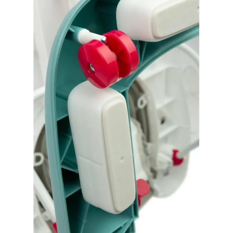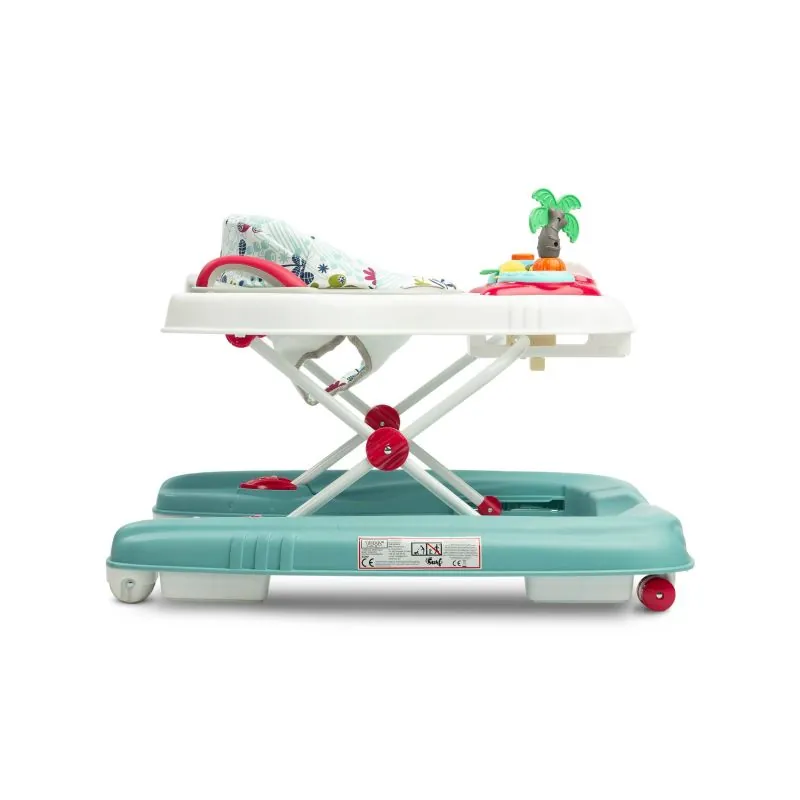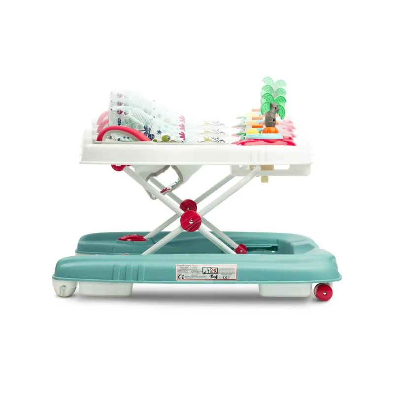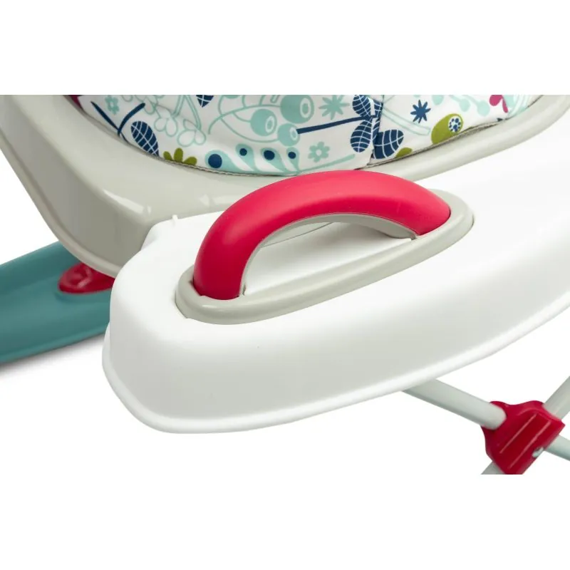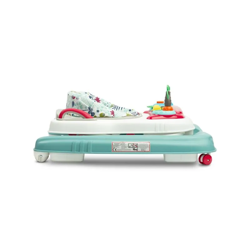 To raksturo drošība, ko nodrošina īpaša konstrukcija, kas ļauj regulēt sēdekļa pozīciju atbilstoši bērna augumam – tā, lai pēdas brīvi pieskartos zemei.Komfortu garantē staiguļa atzveltne, anatomiski pielāgota ķermenim.Uz staiguļa novietotais rotaļlietu komplekts noturēs bērna uzmanību un palīdzēs pareizi attīstīties.Panelis ar melodijām piesaistīs mazuļa uzmanību.Pateicoties rokturiem, kas atrodas staiguļa aizmugurē, noņemot sēdekli, rotaļlieta kalpos bērnam kā stumjamais.Pareiza muguras pozīcija – nodrošina profilētu sēdekli un stingru atzveltni.Priekšējie grozāmie riteņi – atvieglo brīvu manevrēšanu.Gumijas aizbāžņi – neļauj braukt uz nelīdzenu vietu vai nokrist no augsta sliekšņa.Izstrādājuma ilgmūžība – izturīga konstrukcija un kvalitatīvi materiāli garantē izstrādājuma ilgmūžību.Skaidras instrukcijas un vienkārša montāža – staiguli varat salikt acumirklī.