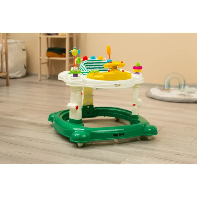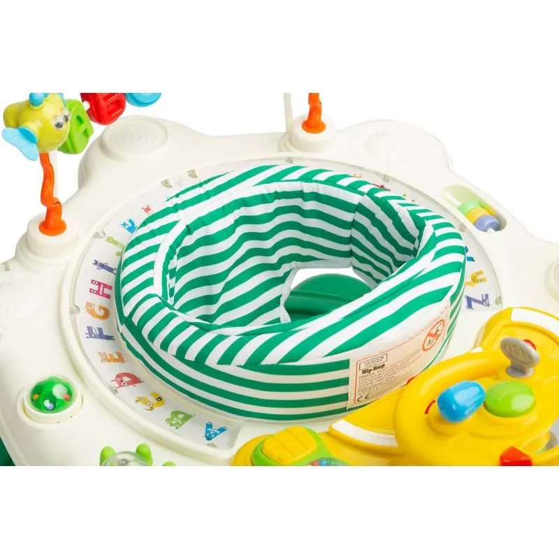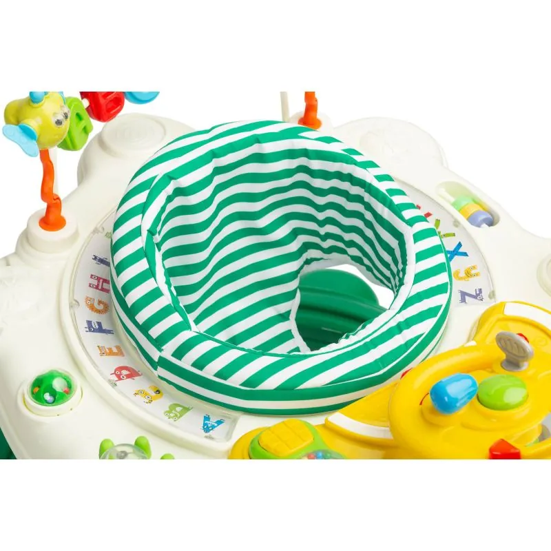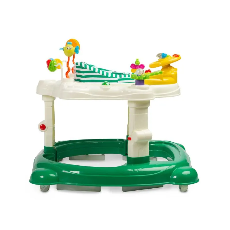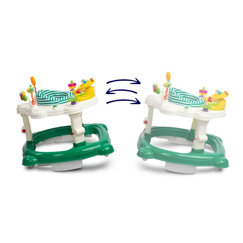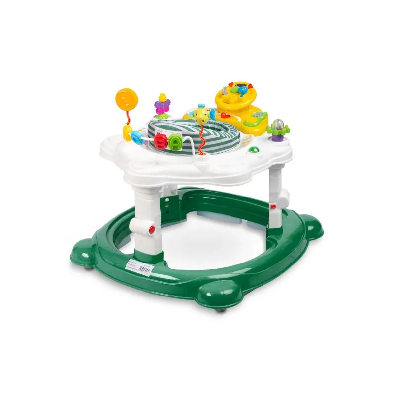 Staigulis izgatavots no augstas kvalitātes plastmasas. Ar 360 grādu rotējošu sēdekli un rotaļīgu izglītojošu galdiņu