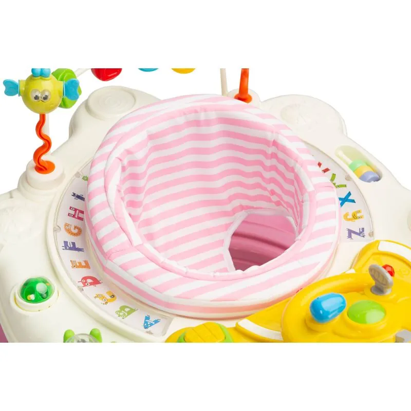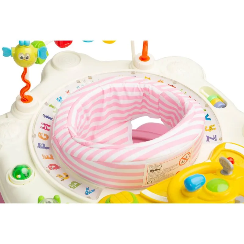 Staigulis izgatavots no augstas kvalitātes plastmasas. Ar 360 grādu rotējošu sēdekli un rotaļīgu izglītojošu galdiņu