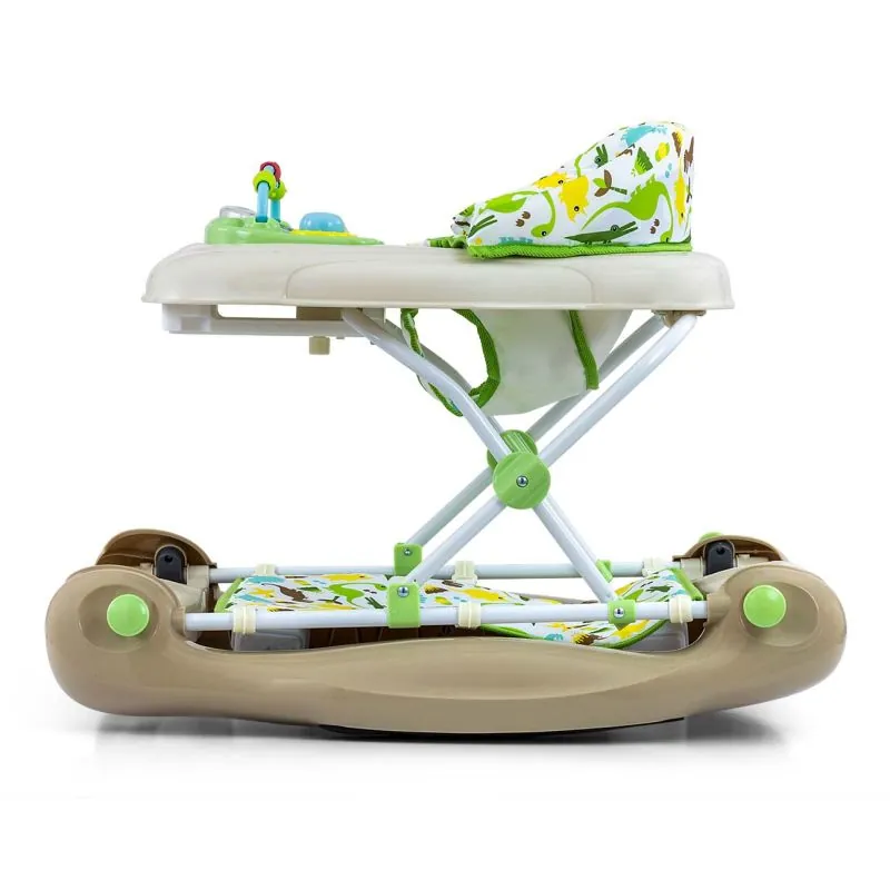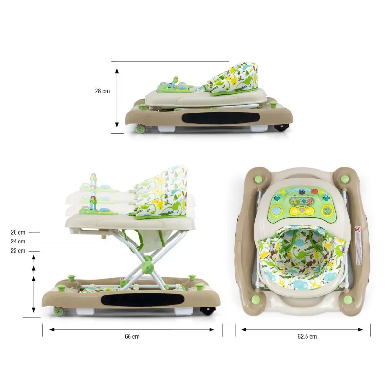 Staigulis PATROL PLUS ir paredzēts aktīviem un zinātkāriem bērniem.Četri kvalitatīvi riteņi, kas neskrāpē virsmu, pa kuru tie pārvietojas, nodrošina kustības brīvību, seši gumijas aizbāžņi pasargās bērnu no slīdēšanas pa kāpnēm vai citām šķēršļiem.Divi riteņi ir grozāmi un divi fiksēti aizmugurē.Papildu šūpošanās funkcija.Veidojot šūpošanās funkciju, zem sēdekļa tiek novietots izturīgs materiāls kājiņu atbalstam.Īpaša konstrukcija ļauj regulēt sēdekli atbilstoši mazuļa augumam, lai kājas varētu viegli pieskarties zemei.3 augstuma pozīcijas, 22, 23.5, 25 cm. (no zemes līdz sēdekļa apakšai)Bērnu izklaidēs dažādas melodijas un gaismas efekti.Ērta salocīšana, tāpēc staigulis neaizņems daudz vietas.Viegli tīrāmi materiāli.Ieteicamais bērna vecums no 6 mēnešiem.Ieteicamais bērna svars: līdz 12 kg.