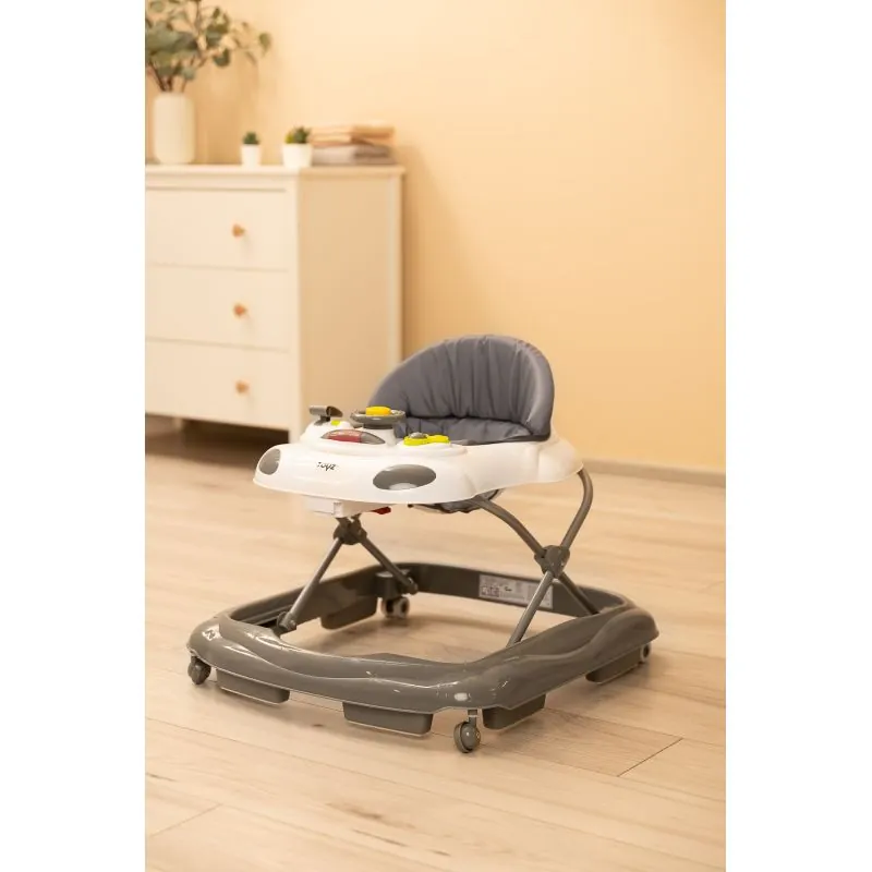 Paredzēts bērniem no 6 mēnešiem līdz 12 kilogramiem;Staigulīša dizains kā automašīnai;Pateicoties ērtam un stingram atzveltnei, mazulis staigulītī jutīsies ērti;Ar vienas pogas palīdzību viegli regulējams staigulīša augstums, lai būtu piemērots kontakts ar zemi;Krāsains panelis piesaistīs katra bērna uzmanību;Izglītojošais panelis aprīkots ar dažādām melodijām;Iespēja salocīt;Pagriežami priekšējie riteņi atvieglo manevrēšanu;Gumijas balsti, kas neļauj iekļūt nelīdzenā reljefā vai nokrist no augsta sliekšņa;Stingra konstrukcija un kvalitatīvi materiāli nodrošina ilgmūžību;