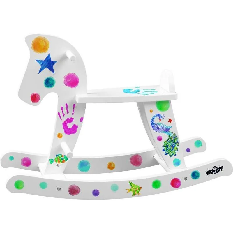Minimālistiska dizaina koka šūpuļzirgs.Izmērs: 68 x 27 cm, augstums 48 cm.