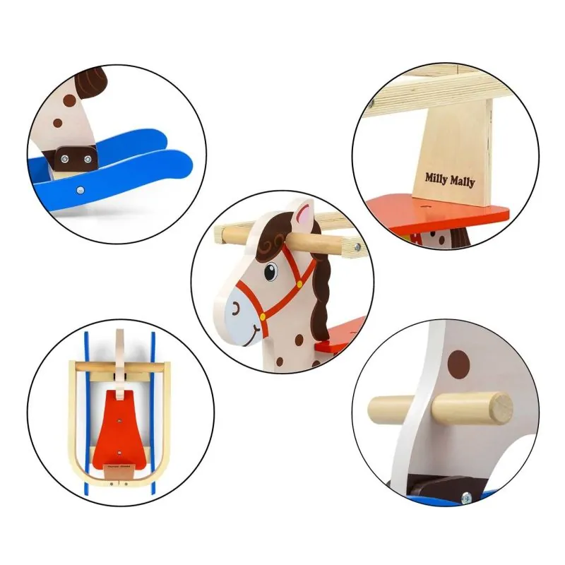 Izturīgs koks un krāsaini dekorēts;Kāju balsts;Pilnībā aizsargāts no visām pusēm pret izkrišanu;Augstums līdz sēdeklim: 30 cm.;Šūpuļzirdziņa augstums: 50 cm.;Šūpuļzirdziņa garums: 70 cm.;Šūpuļzirdziņa platums: 30,5 cm.;