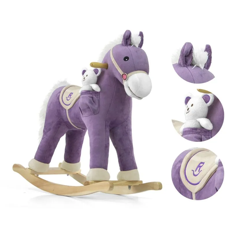 Mīksts šūpojošs zirgs - par šādu rotaļlietu sapņo katrs bērns, bez tradicionālās šūpošanās funkcijas tam ir daudz papildu jautru funkciju;Zirgam ir koka šūpoles un rokturi, kas palīdzēs saglabāt līdzsvaru spēlējoties;Izgatavots no mīksta un maiga plīša materiāla;Spēlējoties bērnam ir jāsaskaņo savas kustības ar zirgu, tas veicina viņa motorisko koordināciju, attīsta iztēli, uzlabo līdzsvara sajūtu; Zirgs ātri kļūs par jūsu bērna pirmo spēļu draugu; Kustina asti;Kustina muti;Izstaro skaņas;Izgatavots no mīksta plīša;Segli ar kāpšļiem;Koka rokturi un šūpoles;Maksimālā slodze: 30 kg.;No 18 mēnešu vecuma;